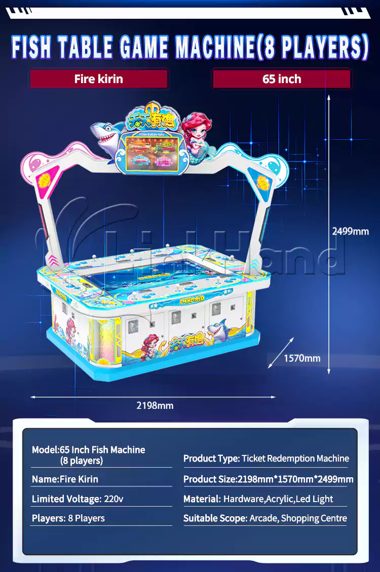 Fire Kirin (8 players) - 65 inch screen fish table machine cabinet